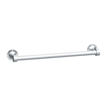 The ASI 0755-SS24 is a heavy-duty towel bar designed for surface mounting in a shower area, hotel or institutional bathroom or other area in your commercial facilities. The towel bar is made from type-304, 18-8 alloy, 20-gauge stainless steel tubing that measures 1 inch in diameter. The bar is securely welded to support posts at either end. These posts are fashioned out of solid cast brass. The design of the unit prevents the towel bar from rotating on the support posts, making it extra strong and resistant to tampering. The towel bar measures 24 inches in length and has an attractive satin finish. Once installed on any hard surface, the towel bar extends from the wall by 2-1/2 inches. The flanges included in the design are outfitted with three countersunk mounting holes, each of which measures 5/16 of an inch in diameter. When installed properly, the towel bar complies fully with ADA barrier-free accessibility guidelines.