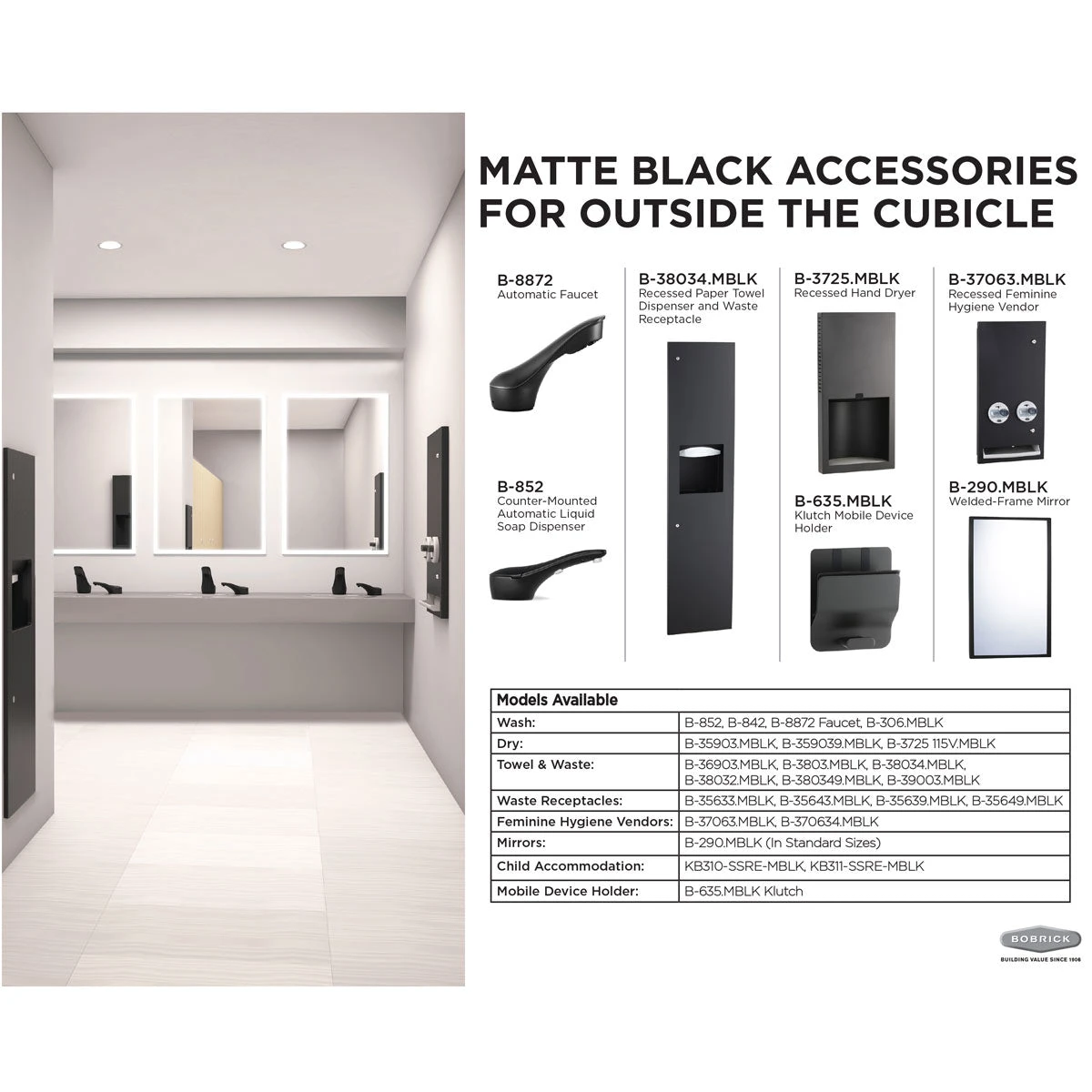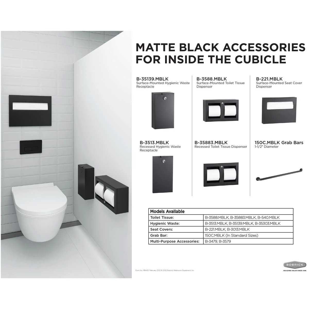 Bobrick 9543.MBLK FINO Toilet Roll Holder, Single, Matte Black Finish.