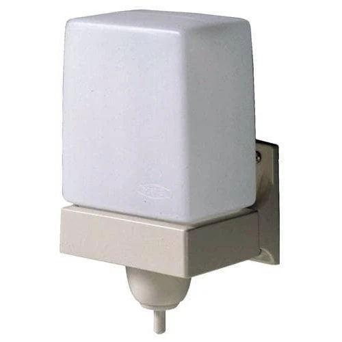 Corrosion-resistant valve dispenses thin, free-flowing commercially marketed all-purpose hand soaps. Translucent polyethylene container provides visible soap level. 24-fl oz (0.7-L) capacity. Unit 4″ W, 7 5/8″ H (100 x 195mm). Beige ABS mounting bracket.