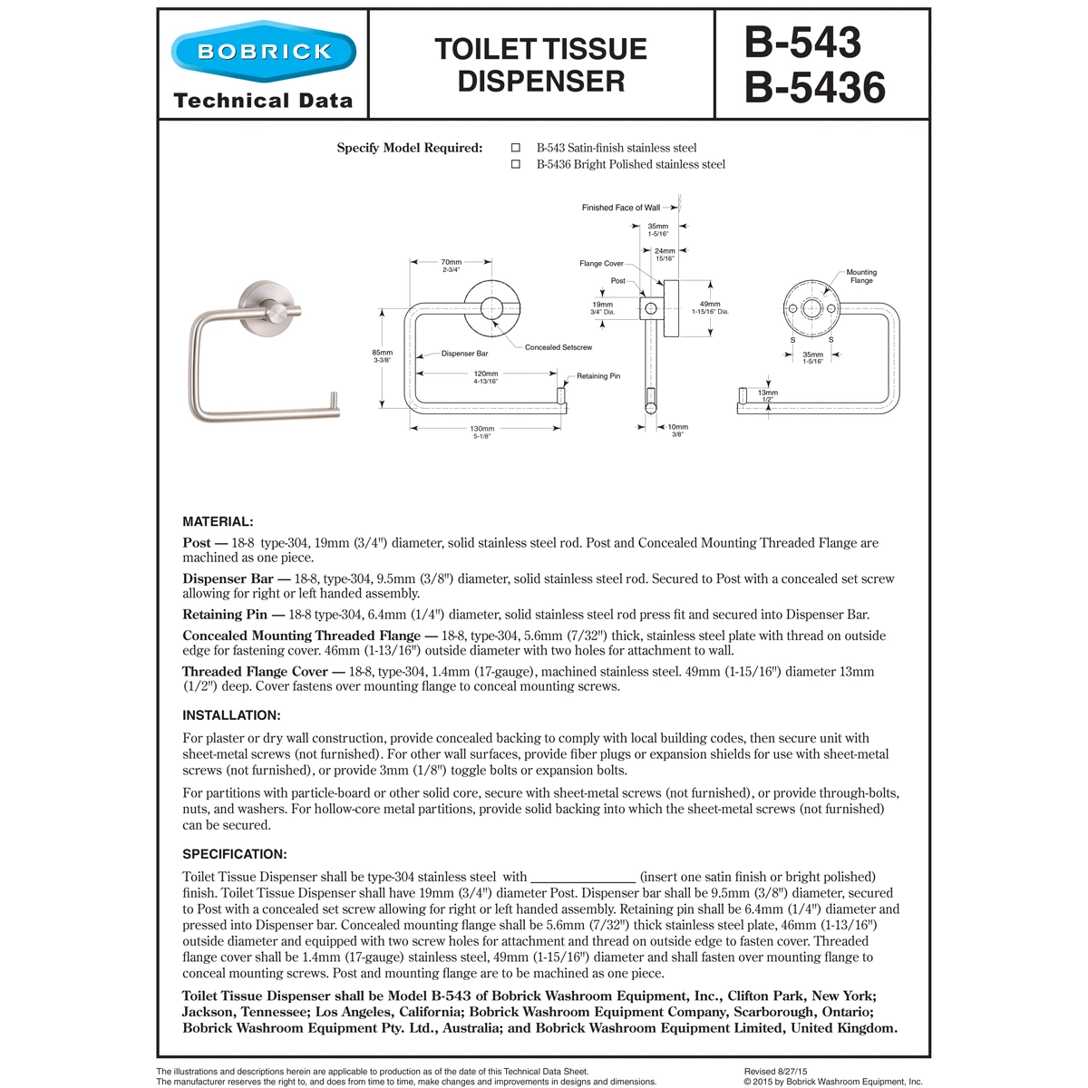 Bobrick B-543 Commercial Toilet Paper Spare Roll Dispenser, Surface-Mounted, Stainless Steel W/ Satin Finish