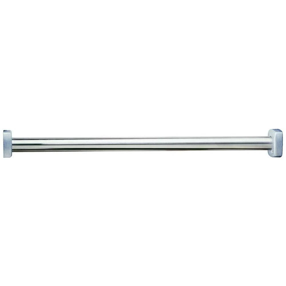 60″ (1525mm) length. Type 304 stainless steel, satin finish. 18-gauge (1.2mm), 1 1/4″ (32mm) diameter rod. Flanges are 2-1/2″ (65mm) square.