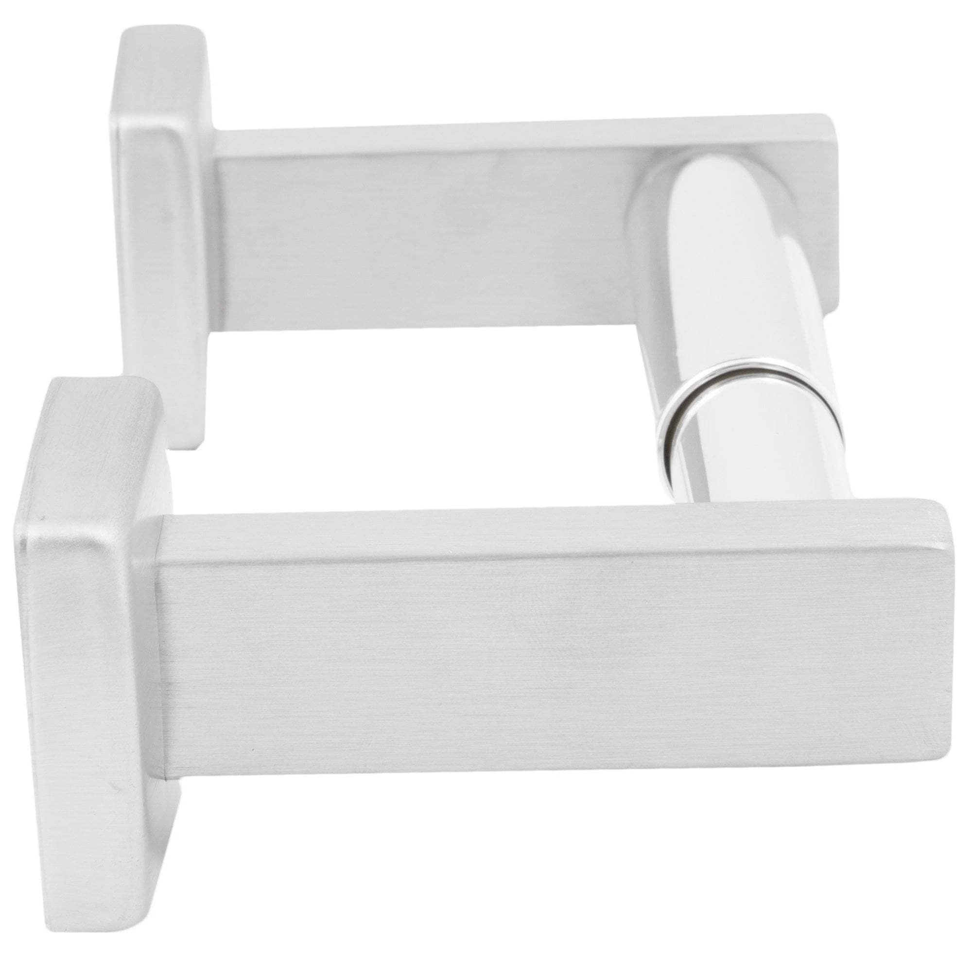 Satin stainless steel. Unit 7 1/4″ W, 2″ H (185 x 50mm); projects 3 15/16″ (100mm) from wall.