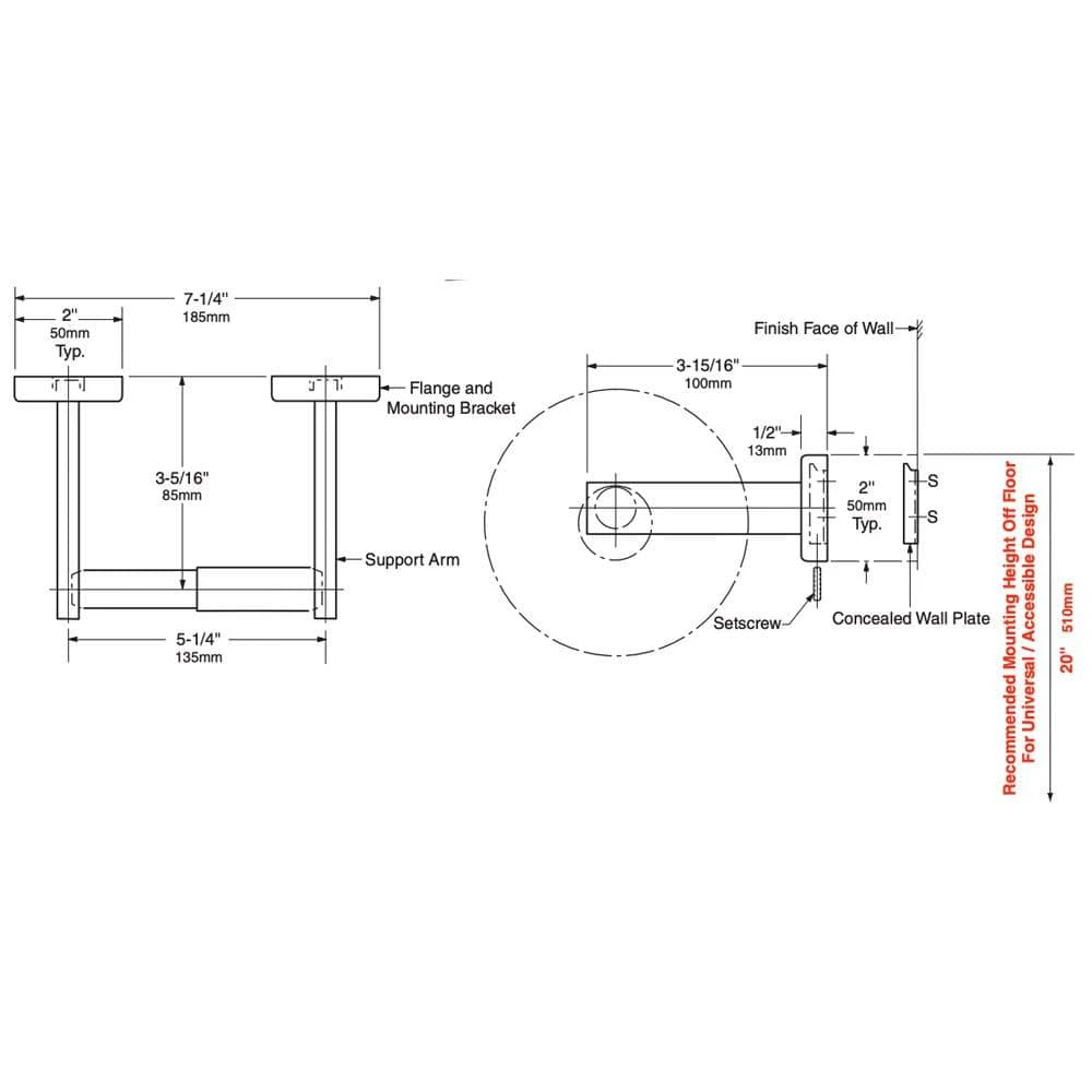- Unit 7-1/4″ W, 2″ H (185 x 50mm); projects 3-15/16″ (100mm) from wall