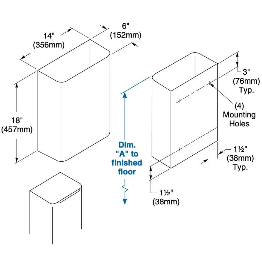 6.5 Gallon, Surface-Mounted, 14″ W x 18″ H, 6″ D, Stainless Steel