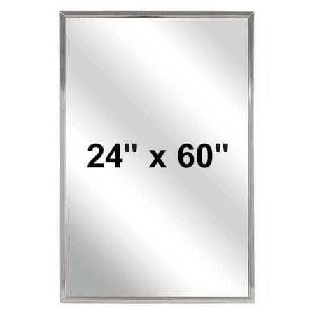 Top quality Bradley mirror designed for commercial restroom applications. One piece roll formed stainless steel frame with bright annealed finish. First quality 1/4 inch float glass, triple-silver-plated with electro-copper-plated layer and thermosetting infrared cured paint packing with Poly-Glaze protective finish. Includes wall hanger – 18 gauge cold rolled steel, all welded construction. Installer to provide mounting hardware. Mirror is 24 inches wide by 60 inches high. Mirror glass manufactured in accordance with ASTM C 1036. ADA compliant.