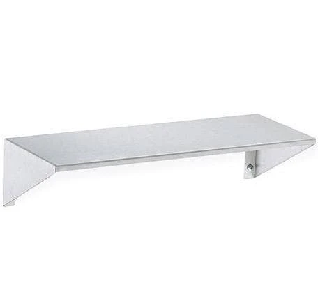 Bradley Shelf. 18 gauge stainless steel shelf with exposed surfaces in architectural satin finish. End brackets are integral. 16 gauge stainless steel center brackets. Welded to shelf. 8 inches deep x 24 inches wide.