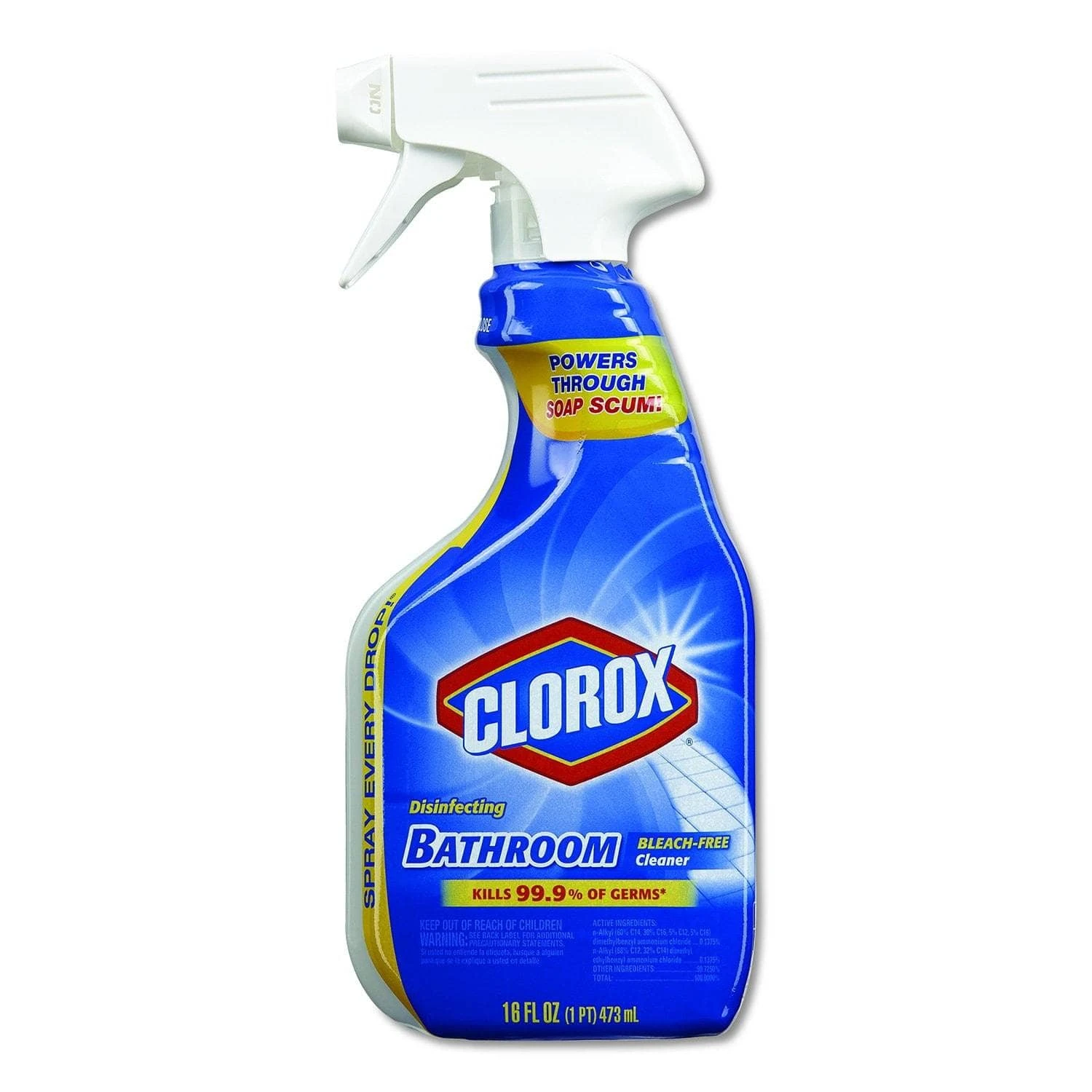 This bleach-free bathroom cleaner has been proven to cut through dirt, grime and soap scum. It also kills germs commonly found in the bathroom such as Salmonella choleraesuis (Salmonella), Staphylococcus aureus (Staph), Rhinovirus Type 37 and Influenza A virus (Hong Kong). This cleaner leaves behind no dull residue and is perfect for freshening and cleaning tubs, tile, toilets, sinks and counters. The Smart Tube technology insures you spray every stain fighting drop. Behind every sparkling clean bathroom, there is Clorox Bleach Foamer Bathroom Spray. Application: Disinfectant/Cleaner; Applicable Material: Counters; Glazed Ceramic Tile; Sinks; Tile; Toilets; Tubs; Chemical Compound: n-Alkyl (60% C14, 30% C16, 5% C12, 5% C18); Dimethylbenzyl Ammonium Chloride 0.1375%; n-Alkyl (68% C12, 32% C14) Dimethyl Ethylbenzyl Ammonium Chloride 0.1375%; Dirt Types: Dirt; Grime; Soap Scum.