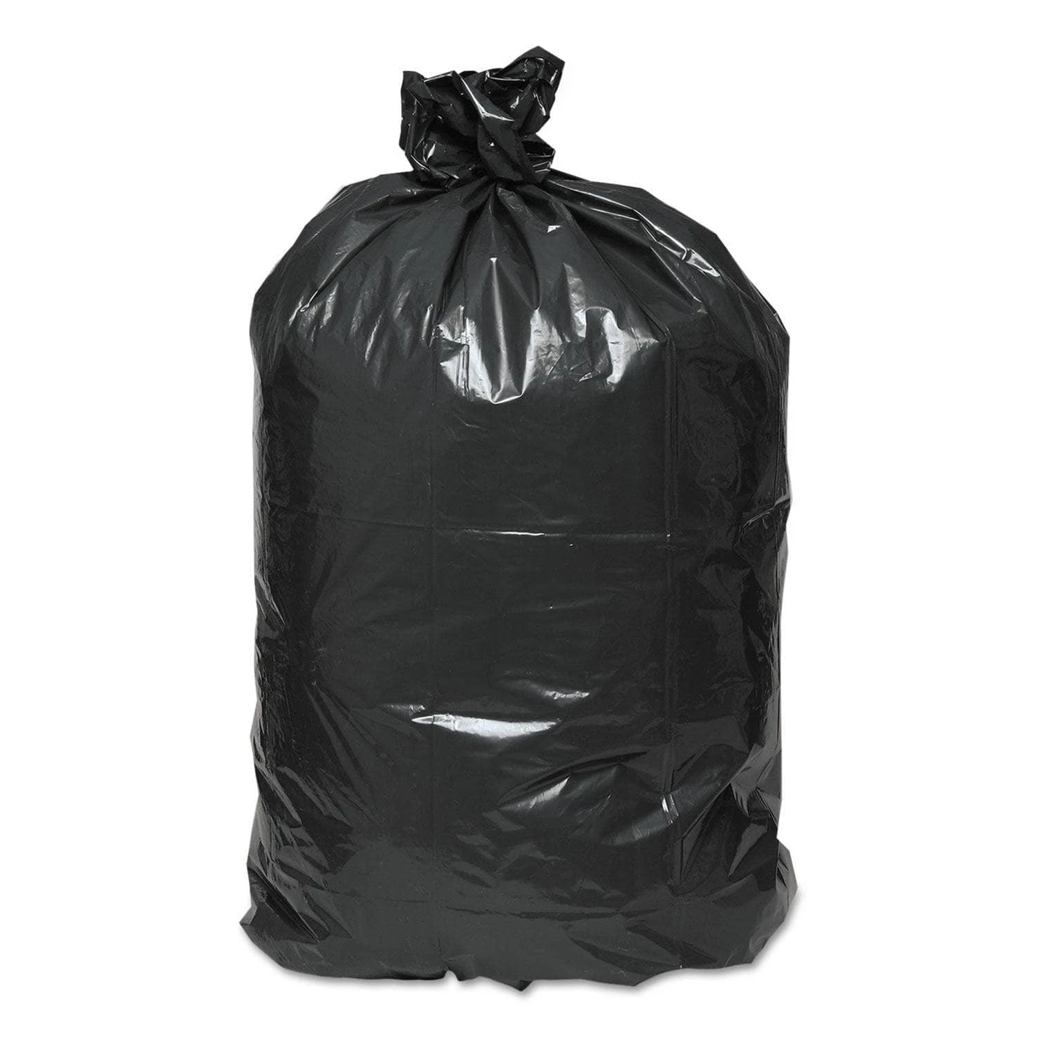 Extra heavy duty recycled liners are suitable for all trash applications. Ideal for state and local municipalities that mandate purchasing of recycled content products. Star bottom seal construction distributes weight more evenly and resists leaks. Coreless rolls for convenient dispensing. Application: Can Liner; Capacity Range (Volume) [Min]: 40 gal; Capacity Range (Volume) [Max]: 45 gal; Thickness: 1.25 mil.