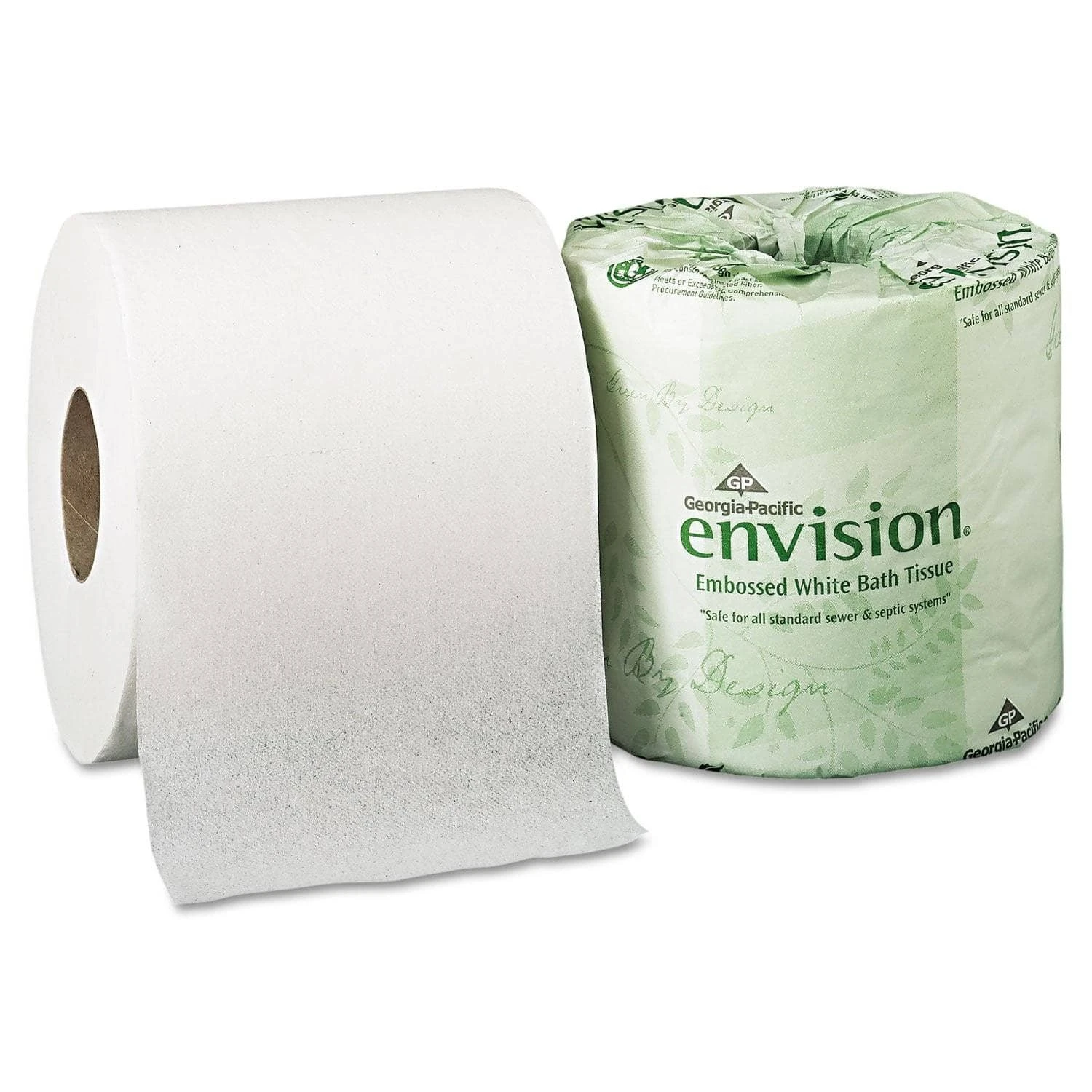 Embossed, facial quality bathroom tissue. Highly dispersible; sewer and septic safe. Tissue Type: Toilet; Number of Plies: 1; Number of Sheets: 550 per roll; Length: 4.05″.