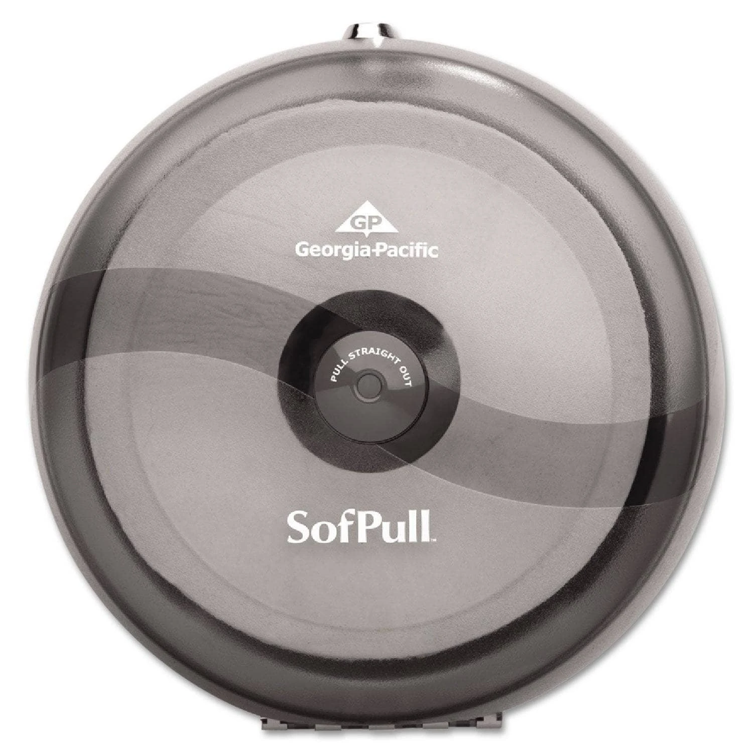 Put a smart new spin on bath tissue: one-sheet-at-a-time dispensing. High-capacity tissue solution helps reduce costs, while helping to improve hygiene. Translucent cover shows when a roll is ready to be changed and is made of polycarbonate for additional strength. Cover also hinges at the bottom for easy mounting and loading. Dispenser will fit your stall with single, side-by-side or stacked configurations. Roll Type: Sheet; Capacity (text): Holds One Roll; Color(s): Smoke Gray; Material(s): Plastic.