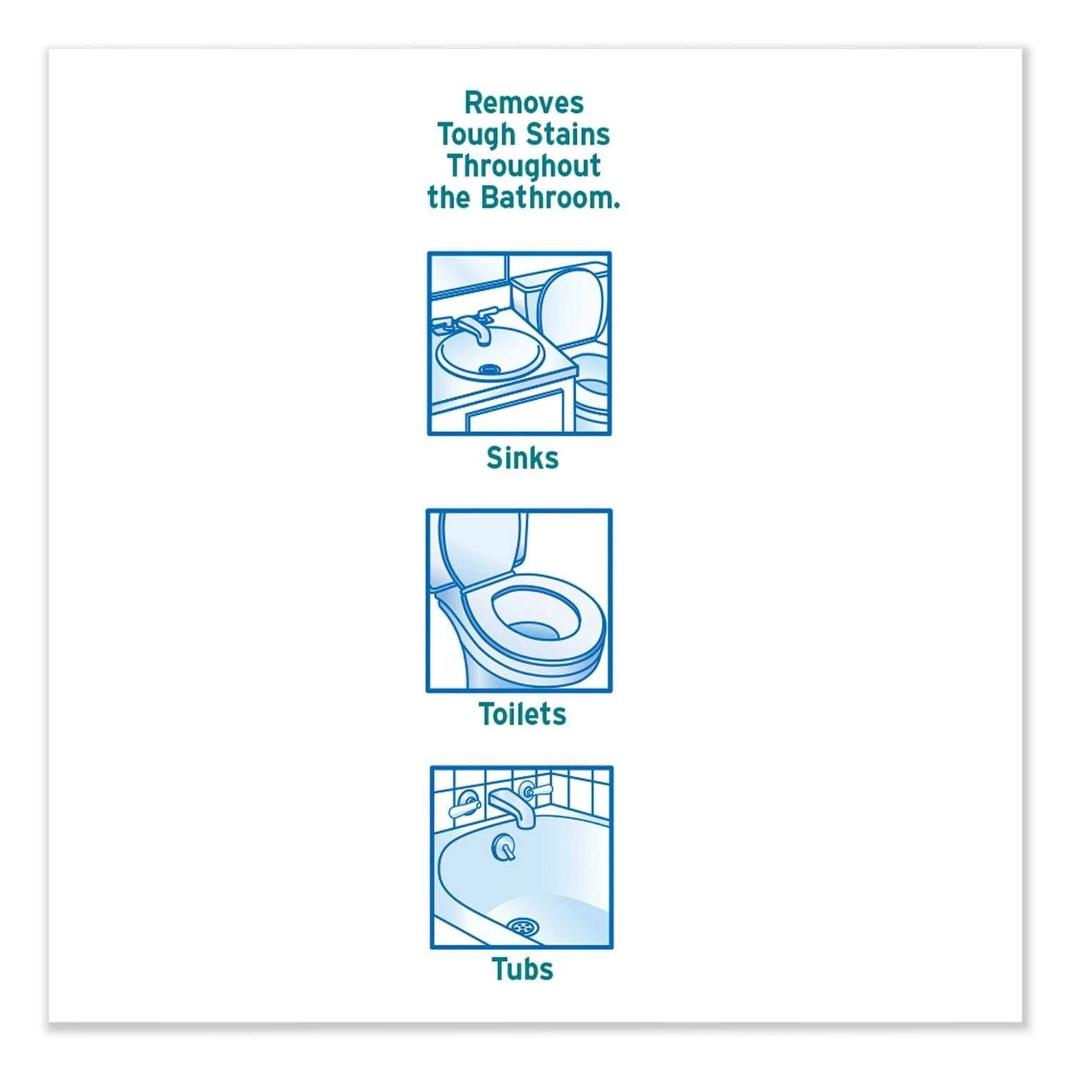 - Removes soap scum, rust and hard water stains on multiple surfaces around the bathroom.