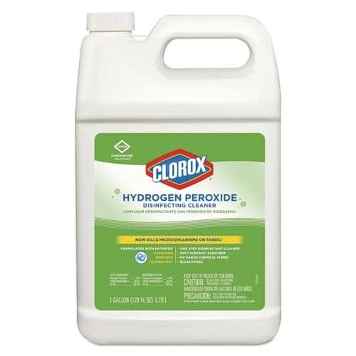 Clorox Hydrogen Peroxide Disinfecting Cleaner is an effective one-step solution to cleaning and disinfecting. Formulated with patented hydrogen peroxide technology that kills microorganisms quickly on a broad range of surfaces. EPA-registered to kill pathogens on both hard and soft surfaces, this cleaner kills bacteria and viruses in as short as 30 seconds and is perfect for use on high-touch surfaces where germs can be easily transferred from person to person. It removes soap scum, grease and grime quickly and can be used on a variety of surfaces including fabrics that are composed of 100% cotton or 100% polyester. Clorox Hydrogen Peroxide Disinfecting Cleaner contains plant-based surfactants and has no harsh fumes, bleach, VOCs or added fragrance.