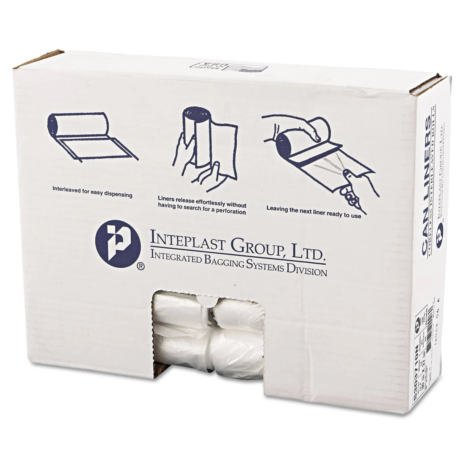 Interleaved for easy dispensing. Made from Formosa resins for reliability and consistency. Star-sealed bottom distributes weight evenly and creates a seal up to eight times stronger than the film itself. Innovative ÒclamshellÓ box with E-Z identification eliminates confusion. Application: Can Liner; Capacity Range (Volume) [Max]: 30 gal; Capacity Range (Volume) [Min]: 20 gal; Thickness: 10 microns.