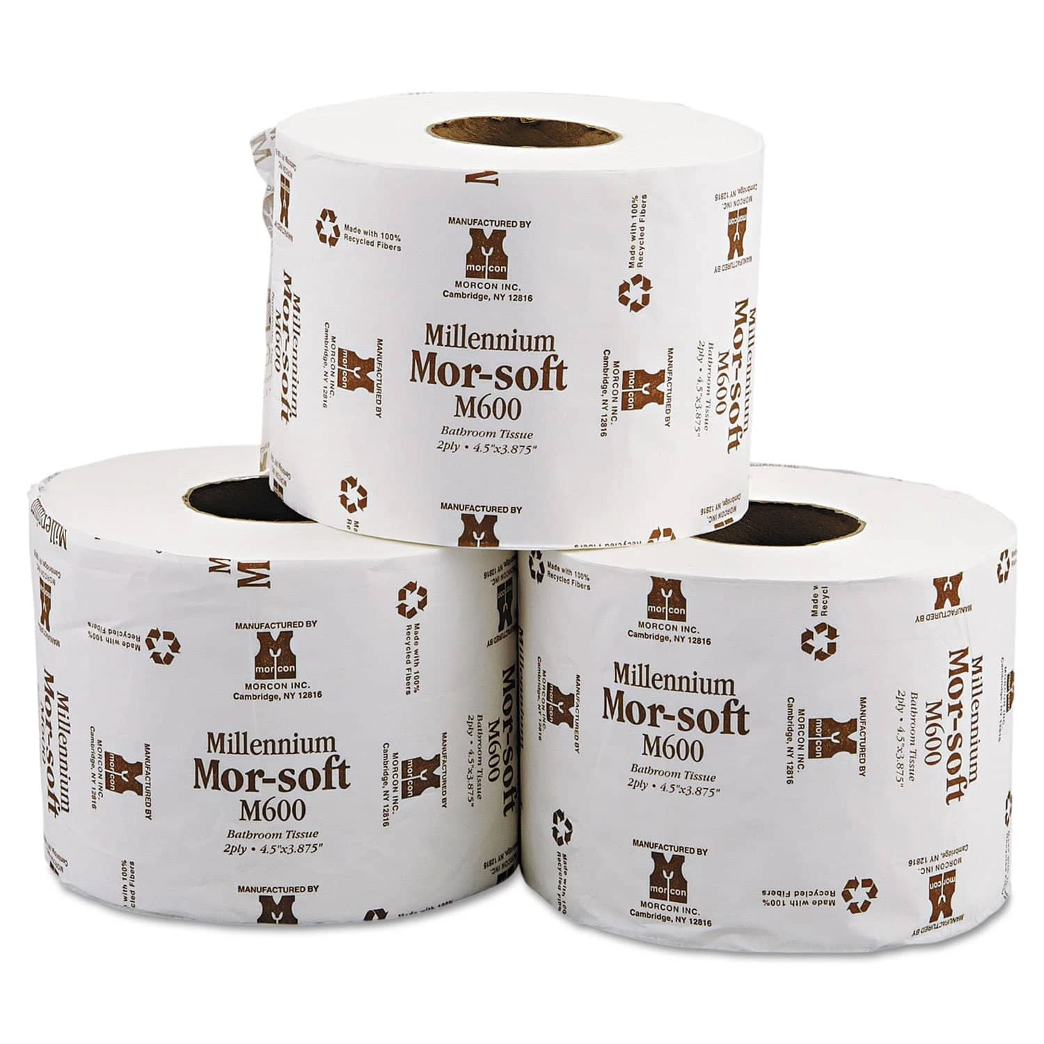Soft and strong bath tissue offers premium quality and durability. With Morsoft Millennium tissue, you can have soft, at-home comfort anywhere. Tissue Type: Toilet; Number of Plies: 2; Number of Sheets: 600 per roll; Length: 3.88″.