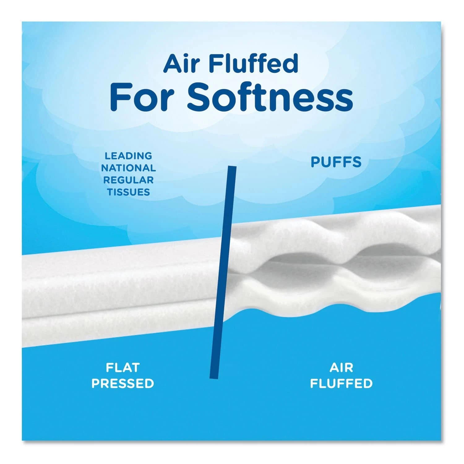 Say goodbye to chapped nostrils and lips. Soft and soothing, lotion-treated tissues are an excellent companion during cold and flu season. Air-Fluffed pillows provide downy cushioning and extra thickness. Attractive, designer packaging adds some pop to your Puffs. Tissue Type: Facial; Number of Plies: 2; Number of Sheets: 116 per box; Length: 8.2″.