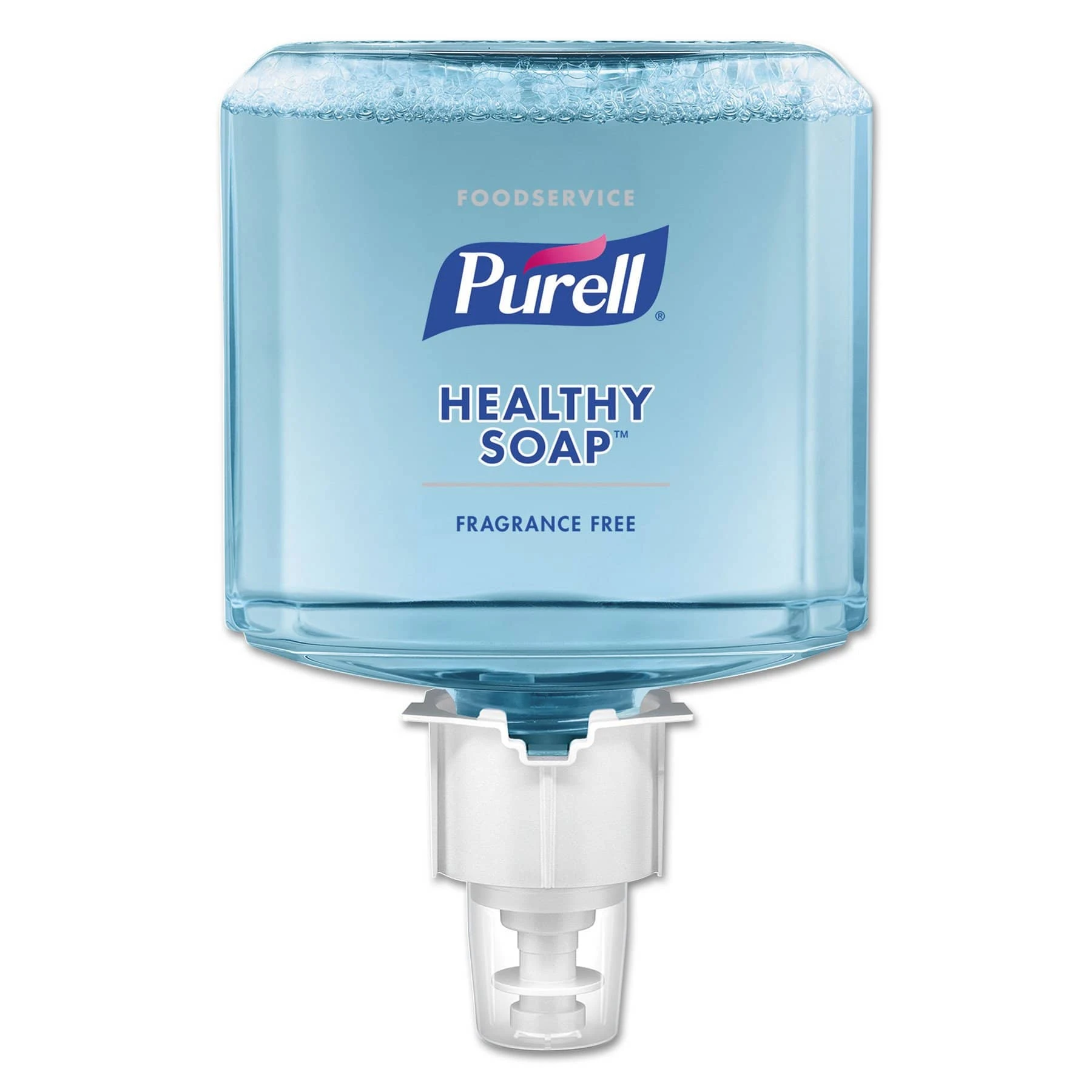 Dye-free and fragrance-free foam hand soap helps wash away foodborne pathogens and soils commonly found in food service environments. Removes food odors and soils. Fragrance-free for food handling. Designed for frequent use. Helps maintain skin health even after repeated washing. Hypoallergenic. AT-A-GLANCE refills make it obvious when refills need to be changed. For Use With PURELL ES6 Soap Dispensers. Soap Type: Foam; Application: Hand; Capacity (Volume): 1200 mL; Scent: Fragrance-Free.