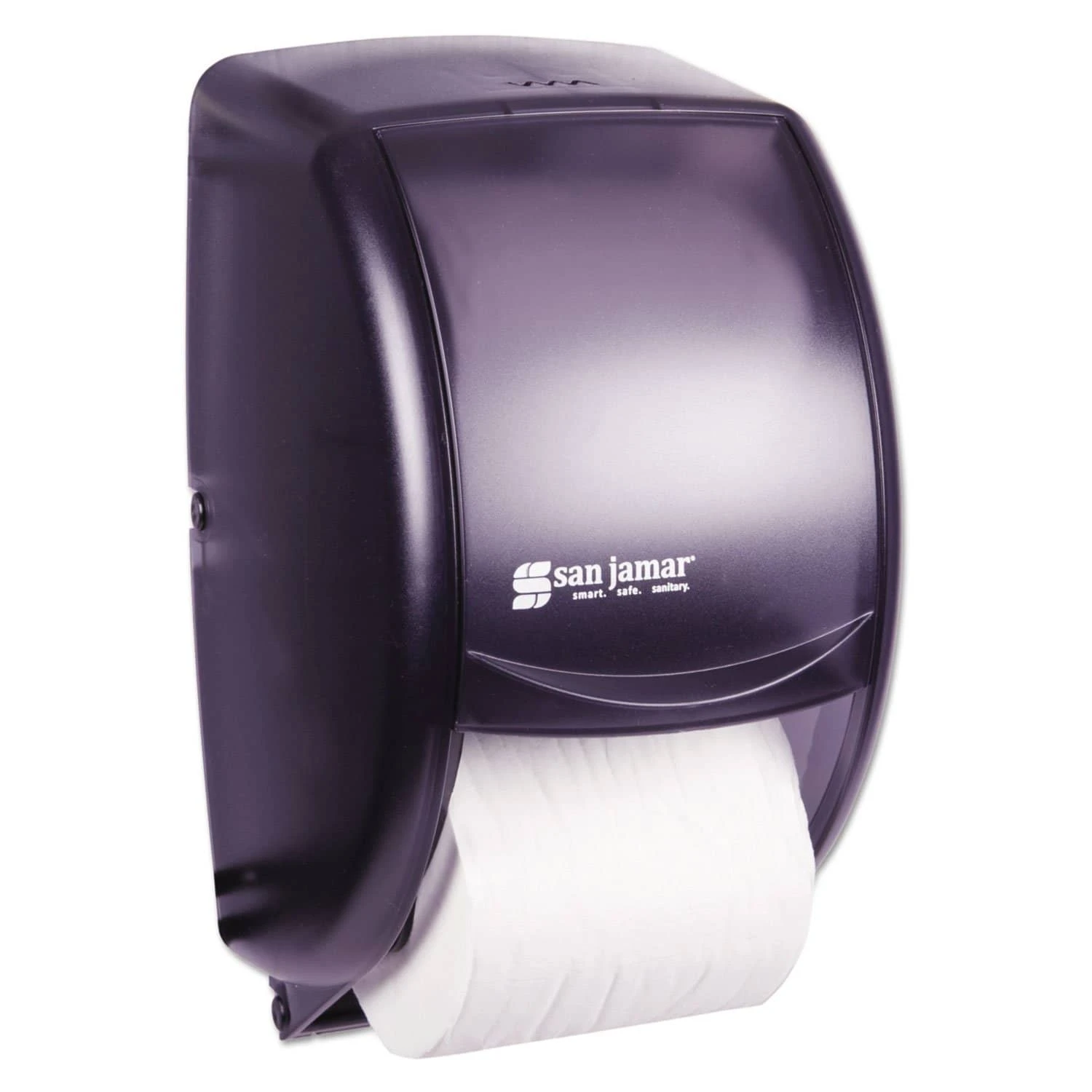 Infinity System eliminates stub roll waste by preventing access to fresh roll until first roll is completely used and ensures continual availability of paper. Because of its compact size, it fits in almost any bathroom. It also has a replaceable finger lock for security purposes. It is made of sturdy, break-resistant plastic. For Roll Size: 5 1/2″; Roll Type: Standard; Capacity (text): Holds Two Standard Rolls; Color(s): Black Pearl.