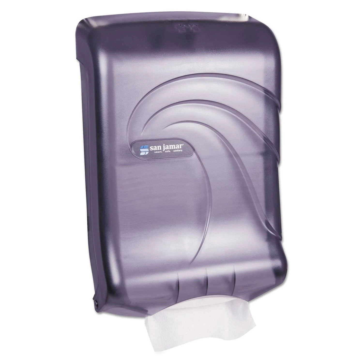An economical solution for high-capacity dispensing of any brand of C-fold or multifold towel. The Ultrafold family of folded towel dispensers offer a clean, low-profile design which make them ideal for tight spaces. The Present System offers a smooth, oneÐatÐaÐtime towel presentation of CÐfold or multifold towels that enhances efficiency and image. OceansÑOceans wave design imprinted on cover. Towels Dispensers Type: Folded Towel Dispenser; Material(s): Plastic; Capacity (text): 750 Multifold/450 C-Fold; Color(s): Transparent Black Pearl.