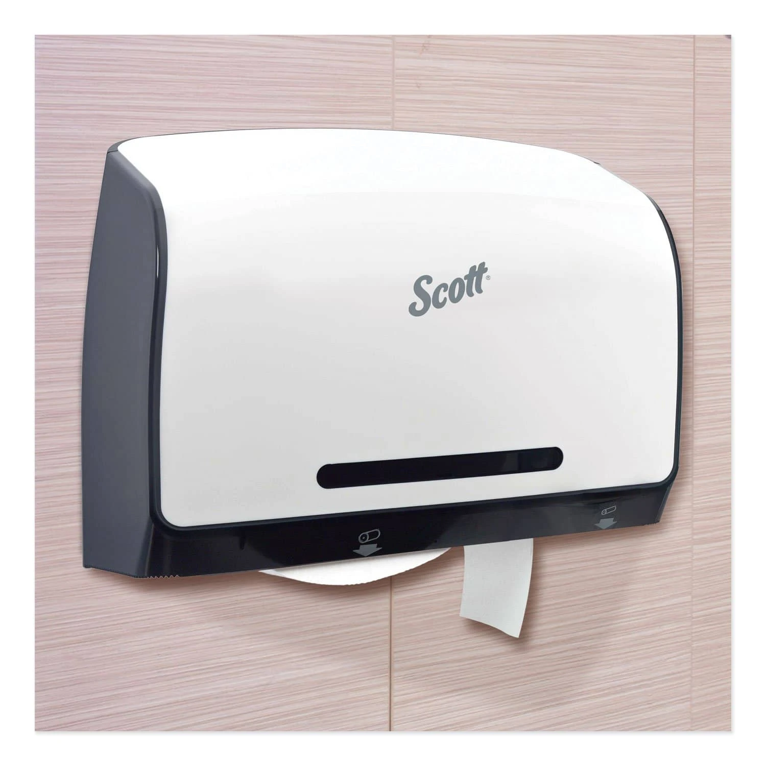 High-capacity bath tissue system perfect for your busy workplace. Keyless, one-handed reloading for easy maintenance; no moving parts. Durable plastic. Holds SCOTT Coreless JRT Jr. rolls (sold separately). For Roll Size: 8 9/10″; Roll Type: Coreless JRT; Capacity (text): Holds One Coreless JRT Roll; Color(s): White.