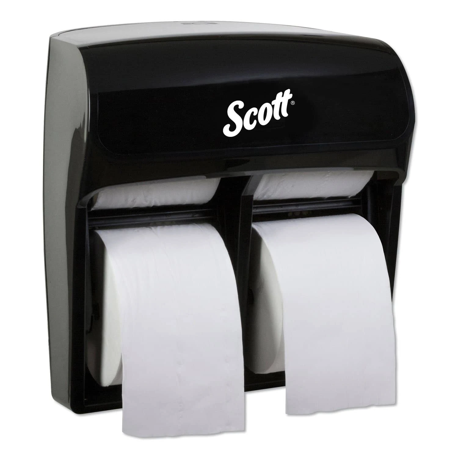 Double your dispensing capacity. Looking for a standard roll bathroom tissue dispenser that offers higher capacity than most systems? This standard roll bathroom tissue dispenser is more compact than the leading high capacity SRB system. It offers double the capacity of competing systems. For Roll Size: 4″ x 3.94“; Roll Type: Standard; Capacity (text): (4) Rolls of Scott or Cottonelle Coreless and Scott Small Core; Color(s): Black.