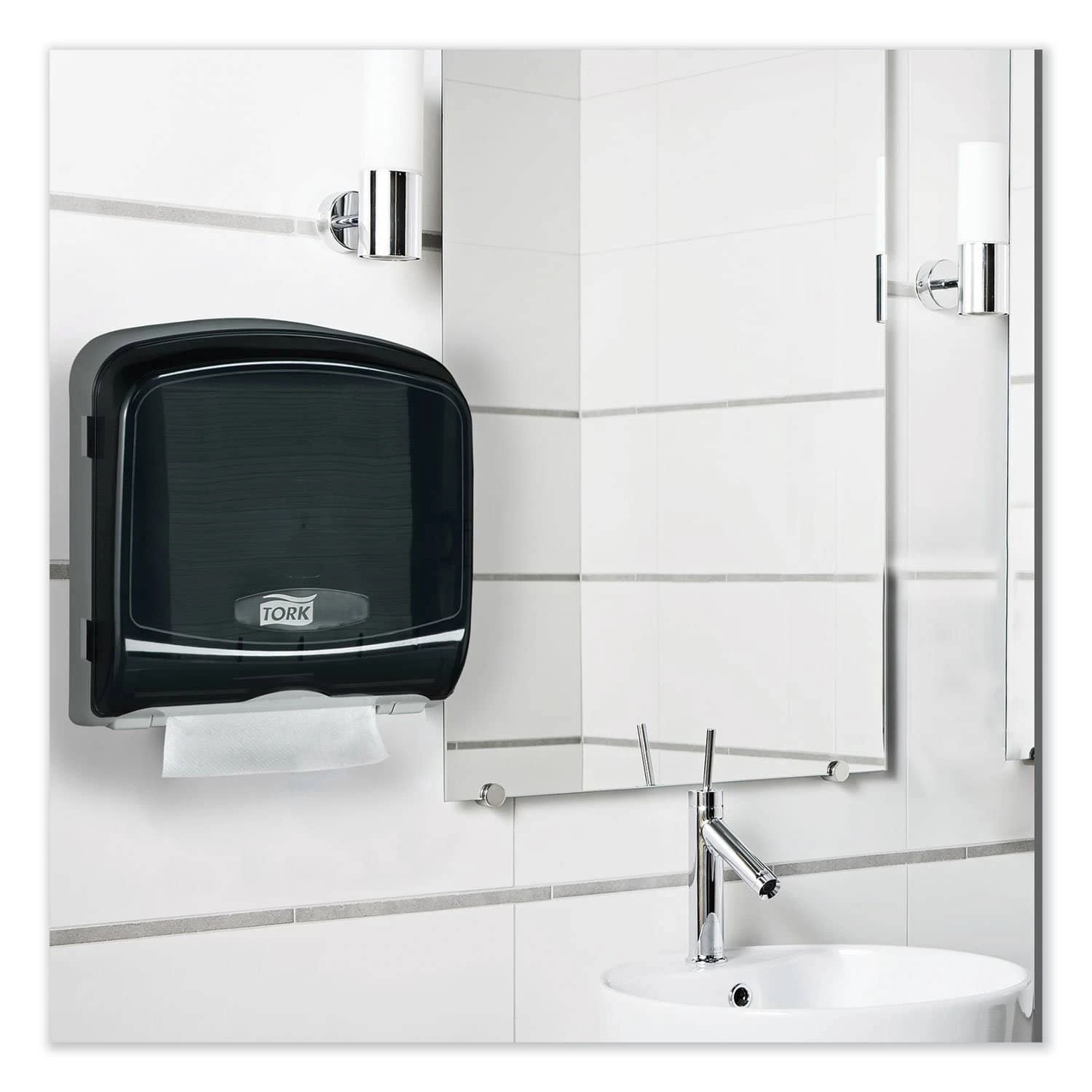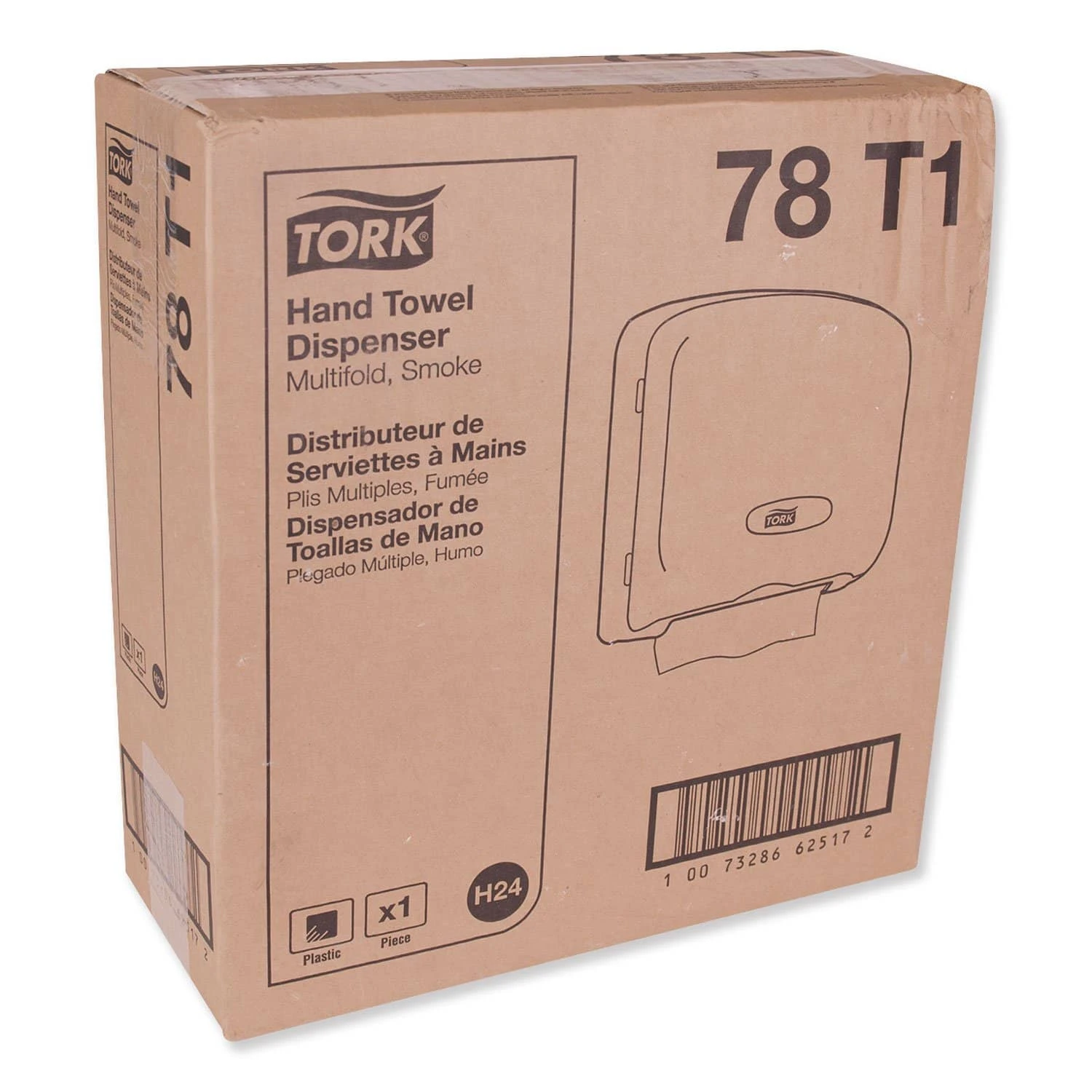 Tork Multifold Hand Towel Dispenser is a compact dispenser unit that will accommodate any washroom or restroom design. Includes a see-through front cover to reduce maintenance time, allowing for quick and easy service checks. The elegant appearance of this dispenser compliments any decor. Easy-to-clean industrial plastic provides low maintenance and trouble-free service. Side hinge for easy loading. Towels Dispensers Type: Multifold Towel Dispenser; Material(s): Plastic; Capacity (text): 500 Towels; Color(s): Smoke/Gray.