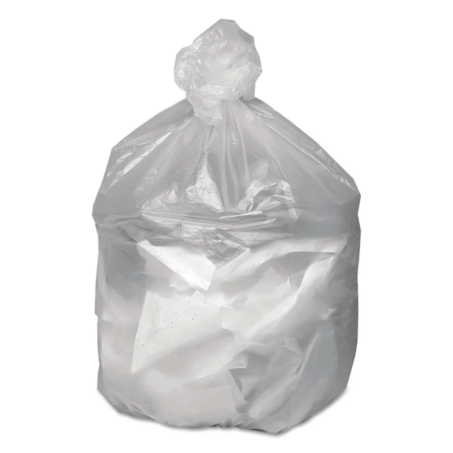 High-density can liners keep office waste contained. Star-seal bottom ensures even weight distribution and provides added leak resistance. Low-count coreless rolls deliver easy, one-at-a-time dispensing while making storage simple. Application: Can Liner; Capacity Range (Volume) [Max]: 16 gal; Thickness: 8 microns; Grade: Light-Duty.