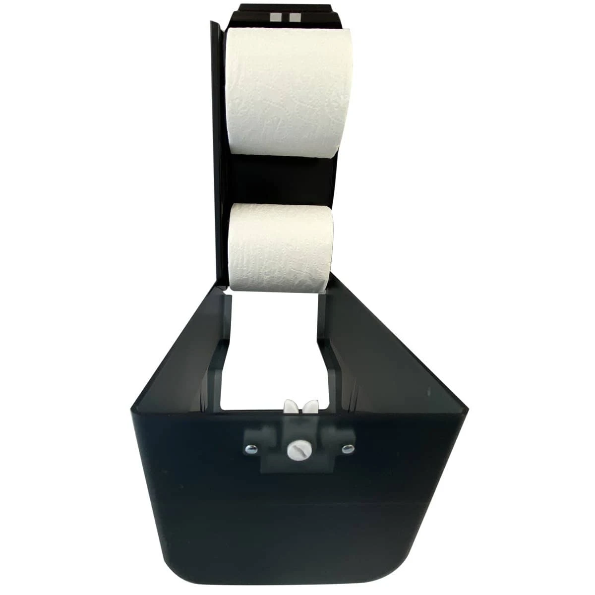 The Two Roll Standard Tissue Dispenser with a metal back is easy to use and install while featuring a modern design. The dispenser uses standard toilet tissue paper rolls up to 5″ in diameter with a 1-1/2″ core. Access to the reserve roll is accessible once the lower roll is completely used. The unit features a translucent cover to allow view of the paper supply, and a durable lock prevents theft.