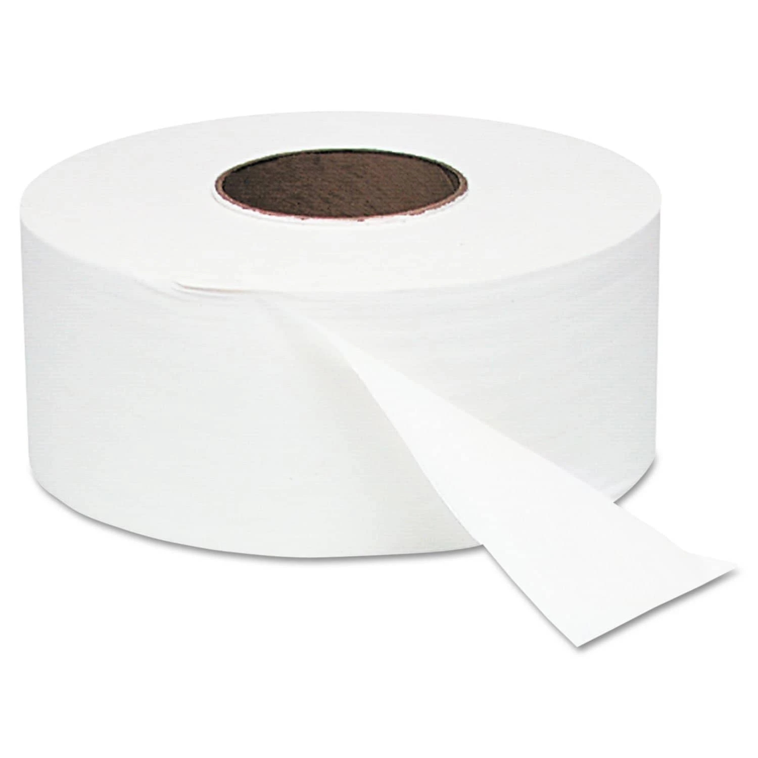 Large roll saves time and money on maintenance. Fits most jumbo dispensers. White. Tissue Type: Toilet; Number of Plies: 2; Length: 1,000 ft; Width: 3.4″.